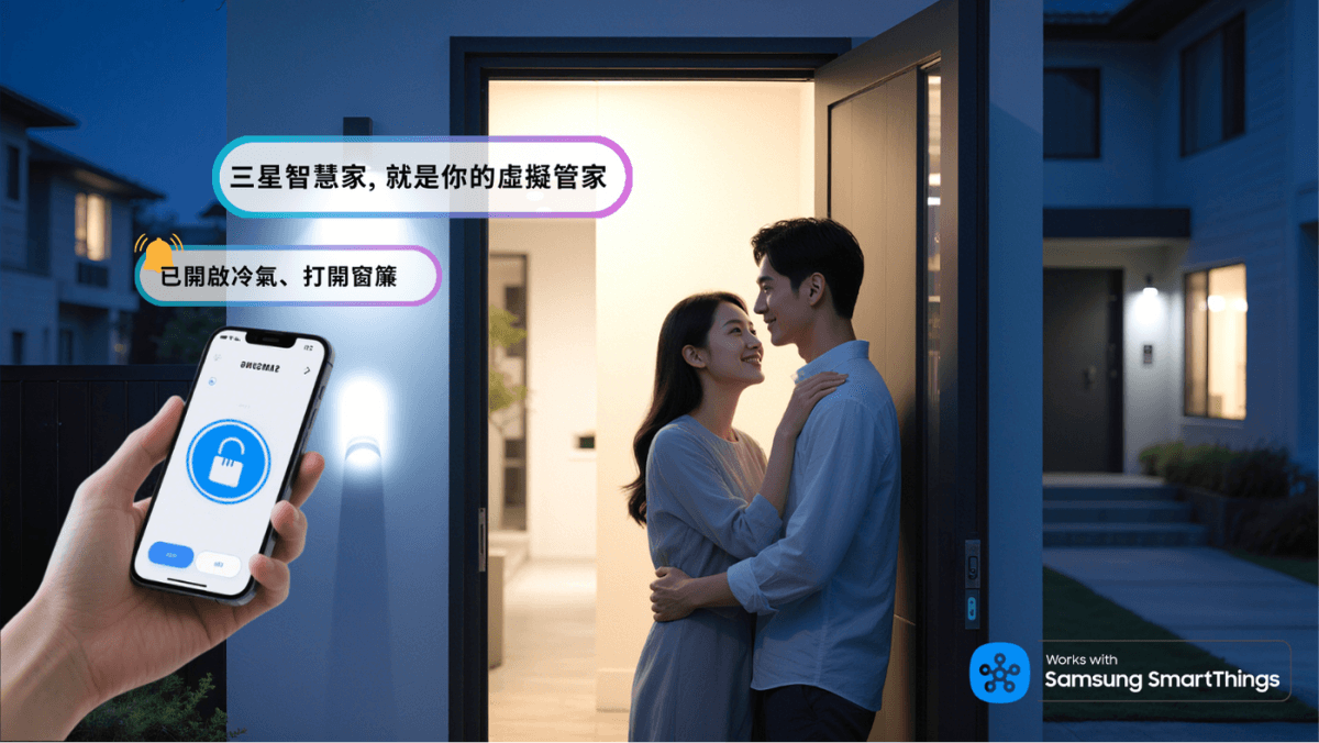 像家中的管家一樣懂你,完美整合三星 SmartThings 生態系統,一開門便觸發感應,燈光、電視與冷氣隨之啟動,真正做到一鎖啟動全屋聯動。